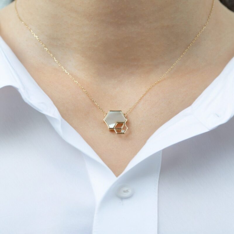 ダイヤを1石と白蝶貝を合わせることで、シンプルな中に輝きをプラスしています。