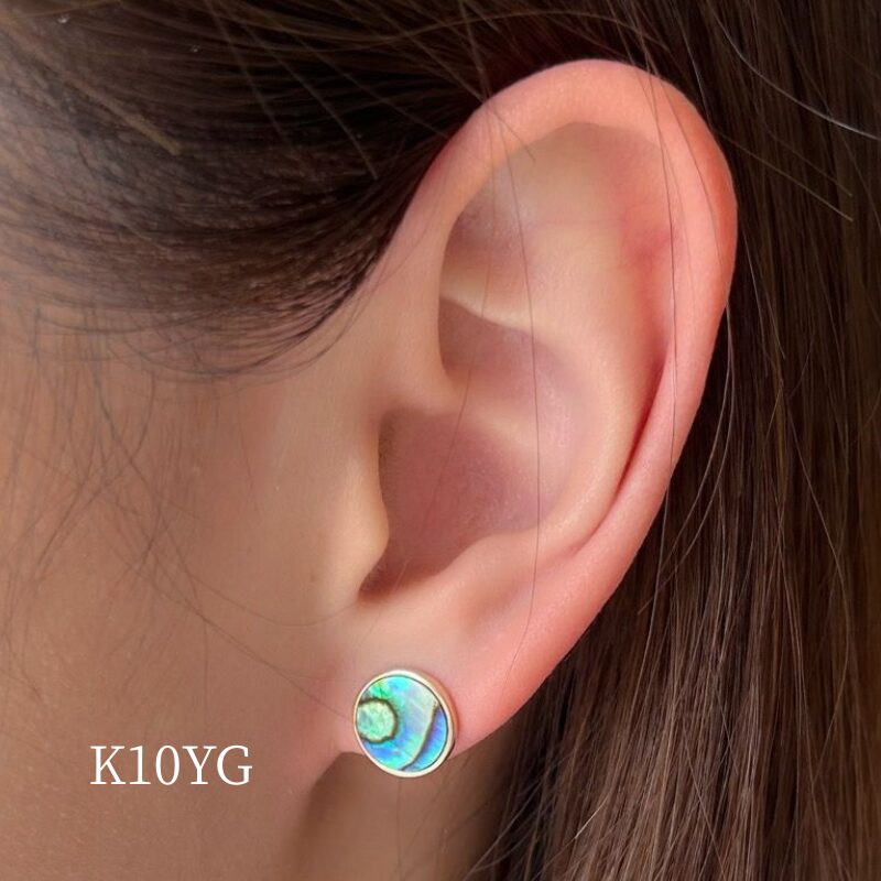 アバロン貝ならではの不思議な輝きを、耳元に添えるピアスです。