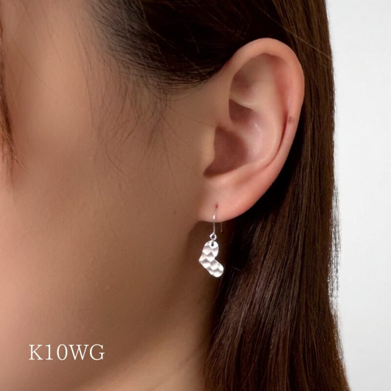 プレスによる槌目加工を施したプレートで作られたピアスです。