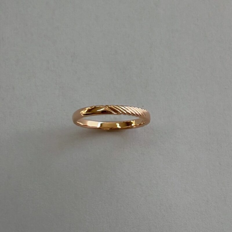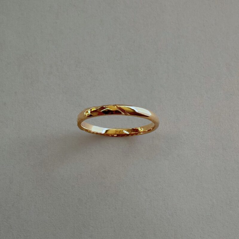 規則正しく並んだライン、不規則な槌目、そしてシンプルな甲丸部分が、その時々で多面性を映し出します。