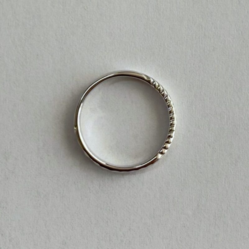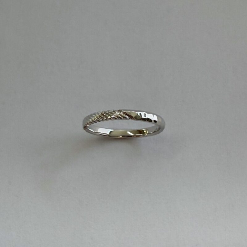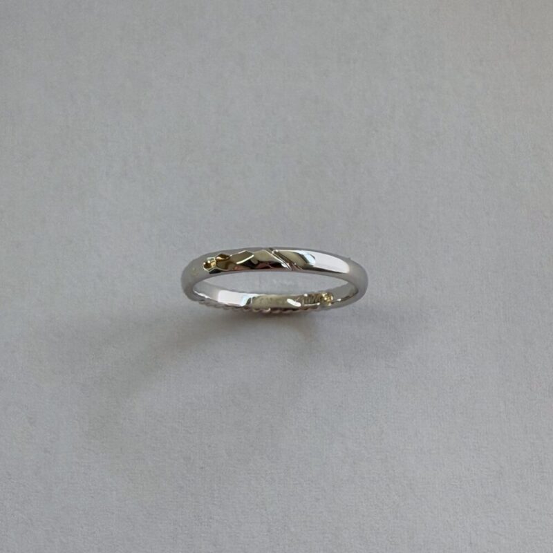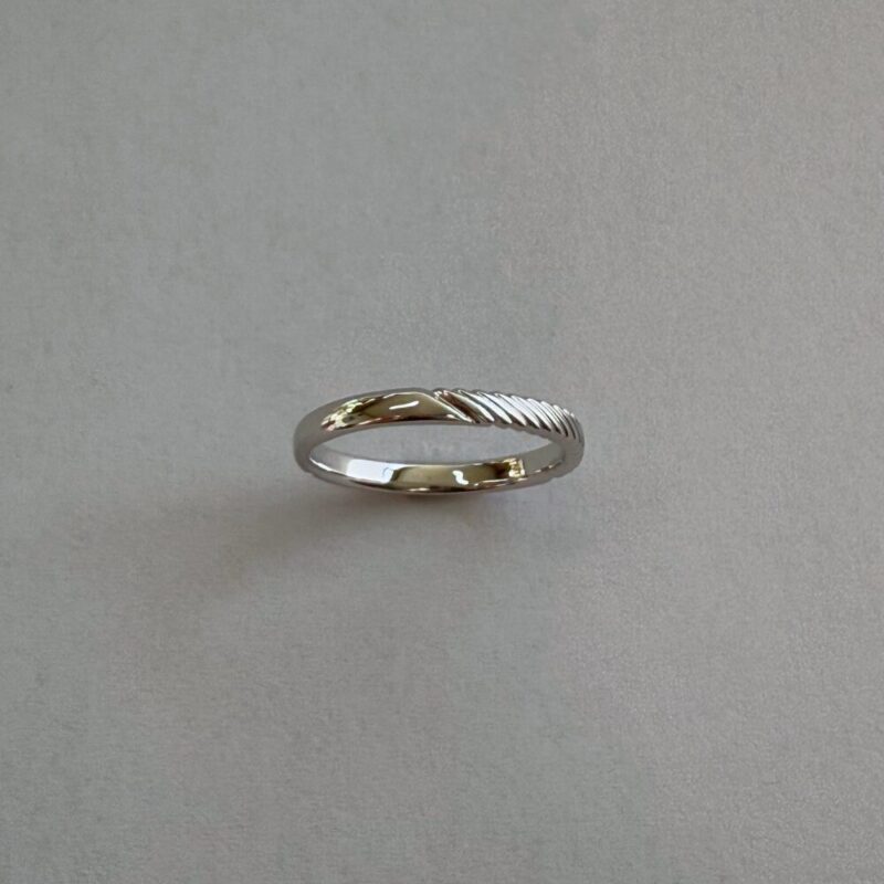 規則正しく並んだライン、不規則な槌目、そしてシンプルな甲丸部分が、その時々で多面性を映し出します。
