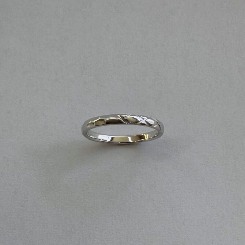 規則正しい断面、ひし形の模様、そしてシンプルな甲丸ラインが、その時々で多面性を映し出します。